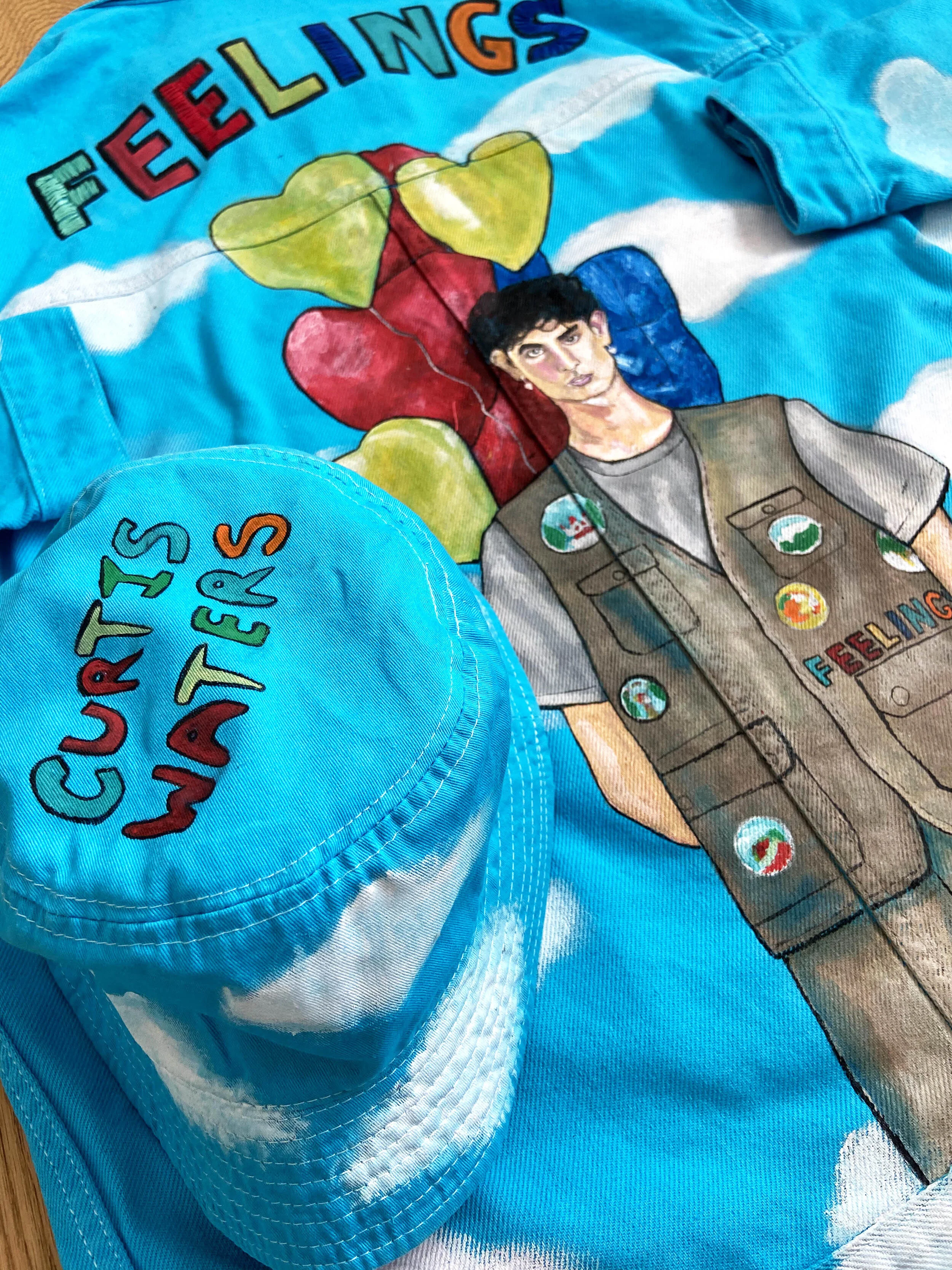 Curtis Waters hand made denim jacket and bucket hat, bucket hat can also be personalised- click here for this option